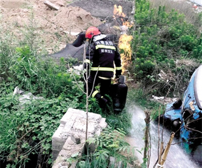 | 郑州“抱火哥”火灾中拖出燃烧煤气罐 |