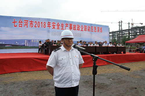 为深入开展安全生产月活动,6月28日上午,七台河市在隆鹏甲醇有限公司举行了政企联动应急演练,旨在强化各单位协同作战能力,切实提高七台河市生产安全事故应急处置能力。本次演练由市政府主办,市安监局、市政府应急办、新兴区政府、新兴区安监局、七台河隆鹏甲醇有限责任公司承办。市政府副市长杨子义、市政府副秘书长耿宝忠以及省安监局领导、省应急管理专家在现场观摩并指导演练。